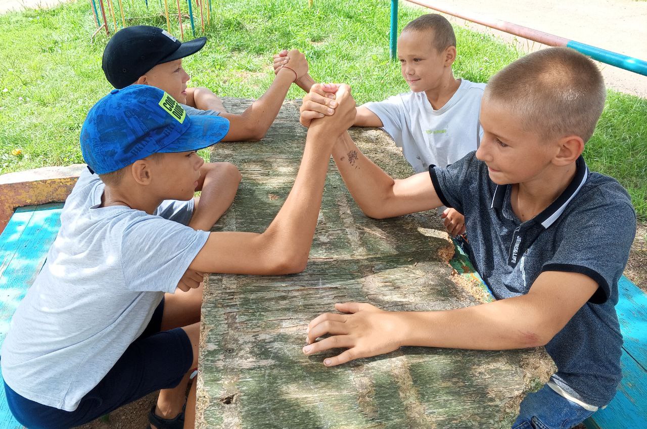 Дети с удовольствием выполняли различные упражнения: отжимались, подтягивались на турнике, прыгали на скакалке, соревновались в преодоление препятствий, и показывали свои знания в разных видах спорта.